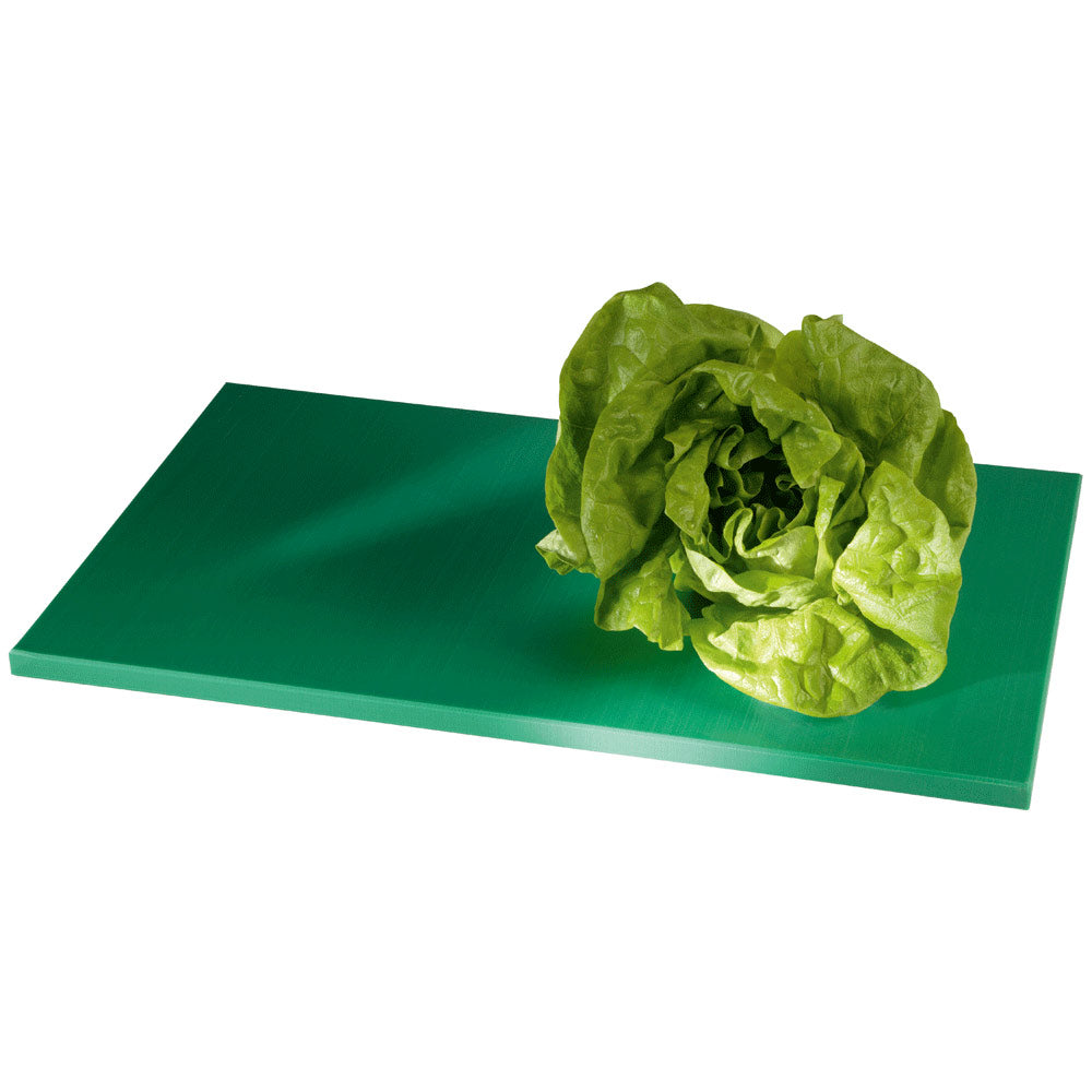 Grünes Schneidbrett in hochwertiger Qualität aus massivem Polyethylen. Somit ist es besonders hygienisch und erfüllt die Anforderungen des HACCP. Die Maße sind 53 x 32,5 cm und entsprechen somit der Gastro-Norm 1/1. Mit einer Höhe von 2 cm ist das Brett besonders stark und verfügt über rutschfeste Gummifüße, die einen sicheren und stabilen Halt garantieren. Das Schneidbrett ist lebensmittelecht und spülmaschinengeeignet (bis max. 60°C).