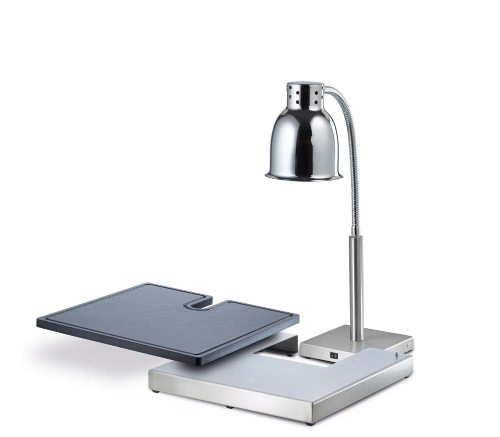 Mit diesen Schneidplatten ergänzen Sie Ihre Buffet-Wärmelampen zu eleganten Tranchierstationen. Messerschonendes und hitzebeständiges Schneidbrett aus PE500-Kunststoff mit umlaufender Saftrille. Das Schneidbrett arretiert auf der Trägerplatte und ist zur Reinigung abnehmbar (spülmaschinengeeignet). Die beheizbare Variante für Ober- und Unterhitze hat einen 230 Volt-Anschluß und eine Leistung von 600 Watt.