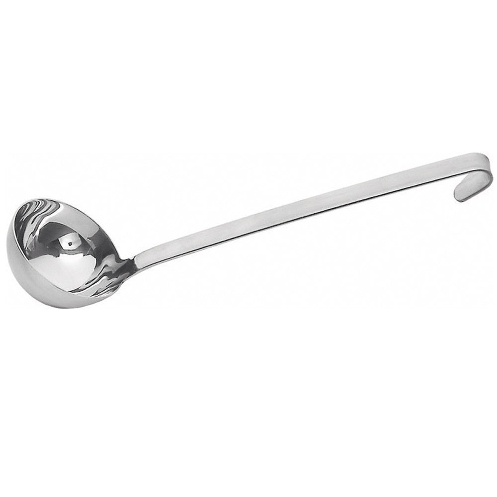 Schwere Qualität aus rostfreiem Chromnickelstahl 18/8 - 18/10. Alle Teile fugenlos gefertigt, mit gebogenem Ende zum Aufhängen. Schaumlöffel und Schöpfkellen mit Maßstempelung, spülmaschinenfest.