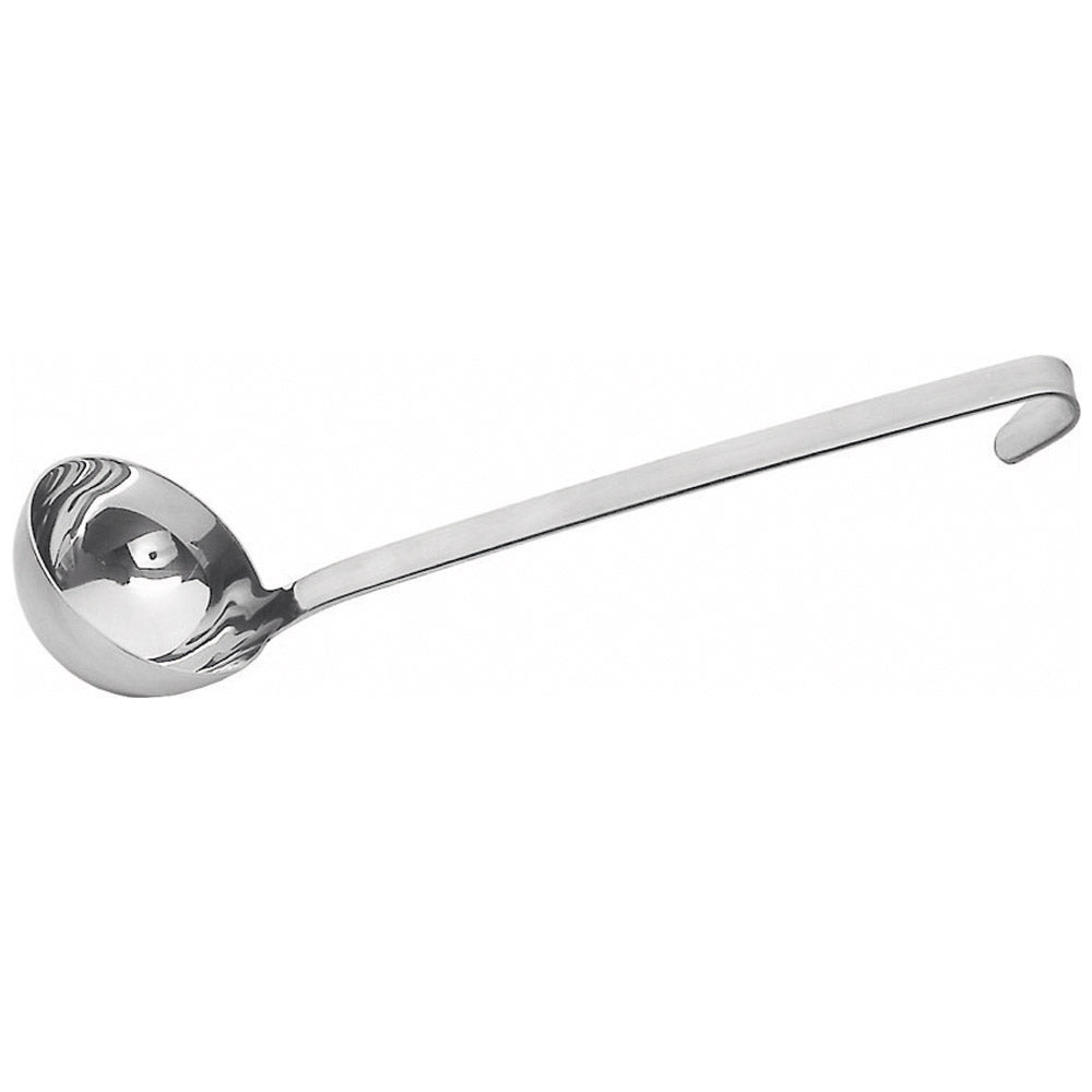 Schwere Qualität aus rostfreiem Chromnickelstahl 18/8 - 18/10. Alle Teile fugenlos gefertigt, mit gebogenem Ende zum Aufhängen. Schaumlöffel und Schöpfkellen mit Maßstempelung, spülmaschinenfest.