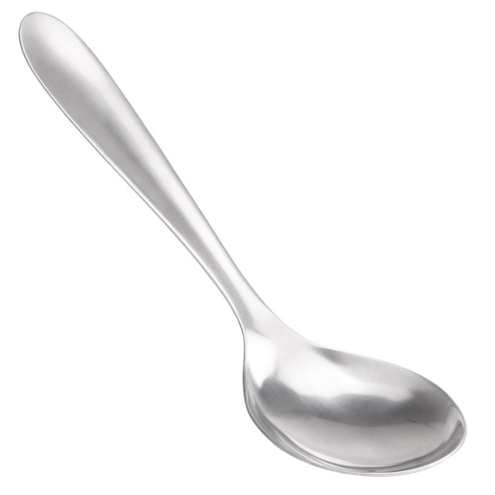 Stabiler, breiter Servierlöffel mit 6 x 7,5 cm großer Laffe. Aus Chromnickelstahl 18/10, rostfrei und spülmaschinenfest.