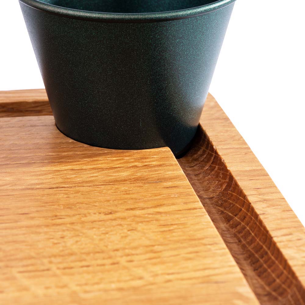 Edles Tablett aus massivem Eichenholz. Nicht spülmaschinengeeignet.