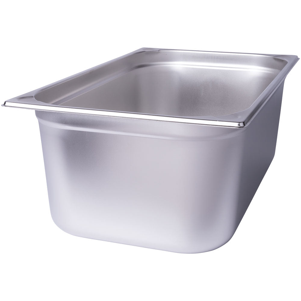 Der Standard-Behälter Smart Line GN 1/1 aus mittelschwerer Qualität hat die Größe 53 x 32,5 cm. Er ist 200 mm tief und fasst einen Inhalt von 28 l. Der Standard-Behälter besteht aus stabilem, rostfreiem Edelstahl mit einer Stärke von 0,6-0,8 mm und ist somit hygienisch und langlebig. Die umlaufende Stapelnocke lässt leichtes Stapeln und Abstapeln zu. Ein effizientes Ausschöpfen ist durch große Eck- und Bodenradien gegeben. Durch eine verstärkende Eckprägung wird das Ausgießen erleichtert. Der Behälter ist hitzebeständig, robust und spülmaschinenfest.