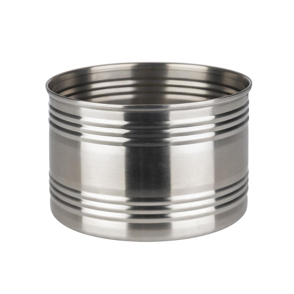 Sehr variabel einsetzbare Serie im Streetfood-Style, die klassische Konservendosen imitiert. Aus stapelbarem, spülmaschinengeeignetem Chromstahl 18/0. Die kleinen Schüsselchen sind ideal für Dips geeignet, die großen auch als Besteckständer.