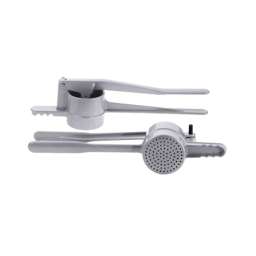 Spätzlepresse für kurze Spätzle. Aus beschichtetem Aluminiumguss, ergonomisch geformt, lebensmittelecht und hygienisch. Hochqualitative Ausführung! Geeignet für Spätzle und Püree. Die Presse ist spülmaschinengeeignet dank der Spezialbeschichtung. Insgesamt fasst die Presse 40 cl bei einem Durchmesser von 8,5 cm und einer Länge von 37,5 cm.