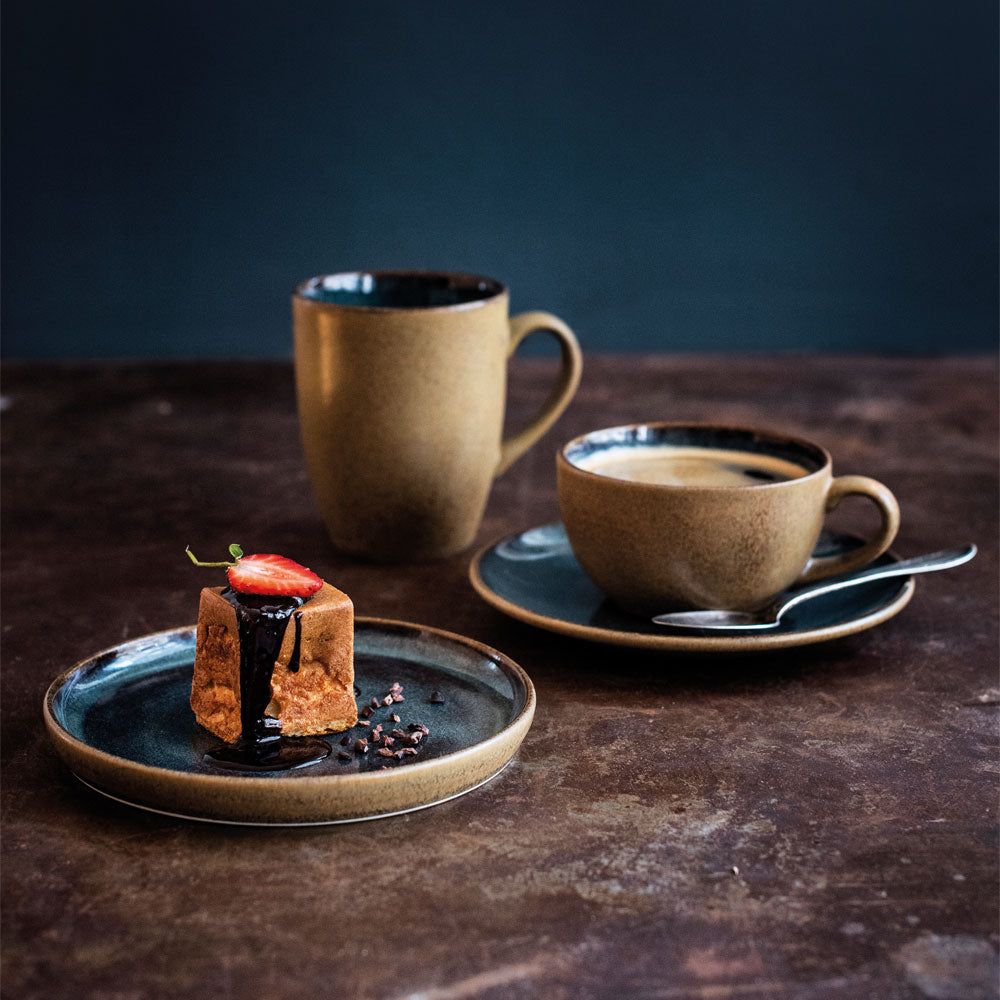 Die Sphere Kollektion vereint die Natürlichkeit von Meerestönen, die Originalität der Handmaltechnik und die alte Tradition des Töpferhandwerks. Sie bietet eine natürliche Kulisse für Ihre Präsentationen und wartet darauf, an Tischen als ausgefallene, rustikale Alternative mit beeindruckenden Tonübergängen und einem reichen Glasurfinish mit einem einzigartigen, steinartigen Aussehen zu glänzen.