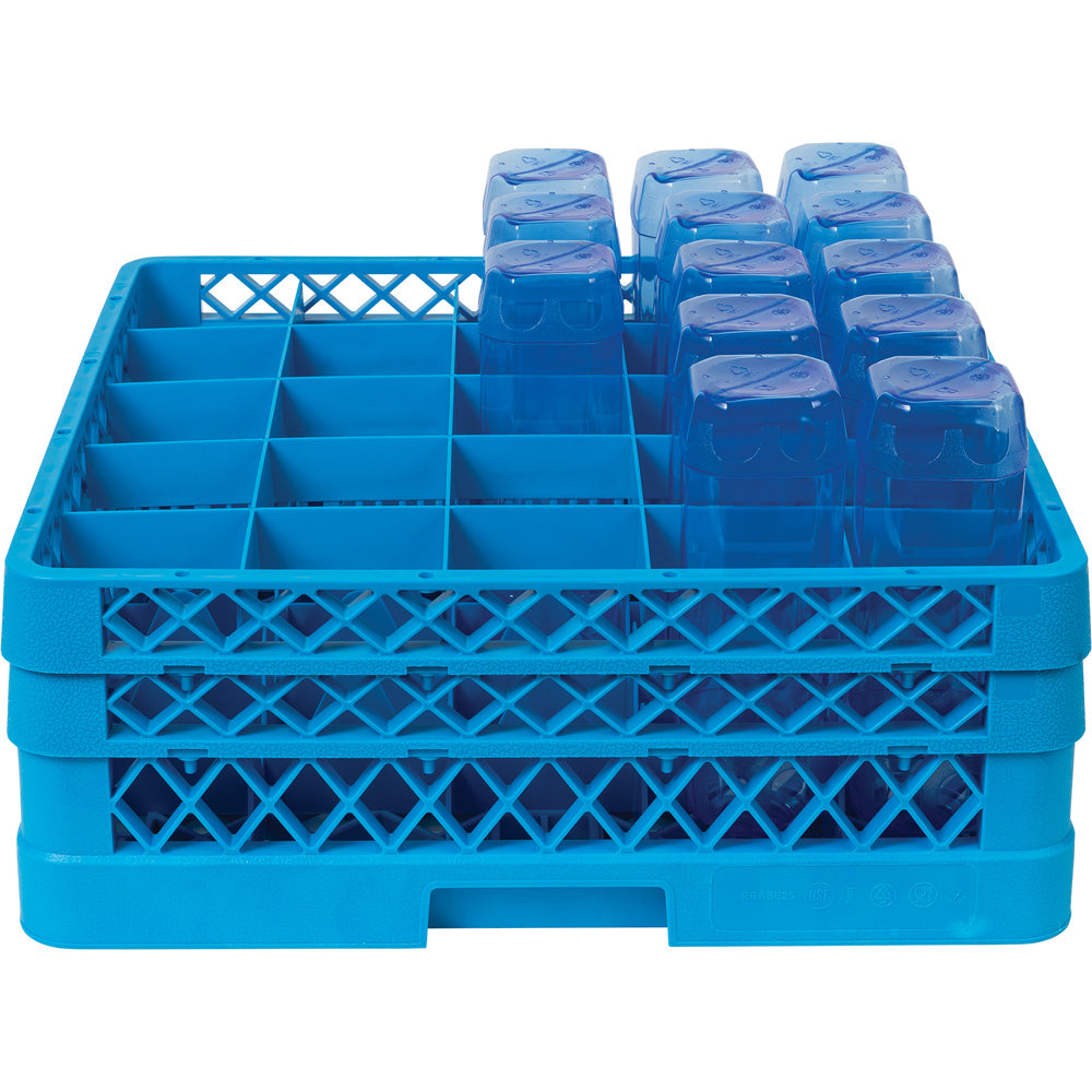 Gefertigt aus hochwertigem blauem PP-Kunststoff, passt das Spülkorb-Set in gewerbliche Spülmaschinen mit Standard-Korbmaß 500 x 500 mm.