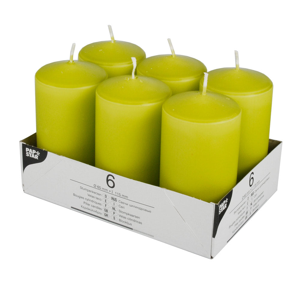 Stumpenkerzen Ø 6 x 11,5 cm - Kiwi (4 x 6 Stück)