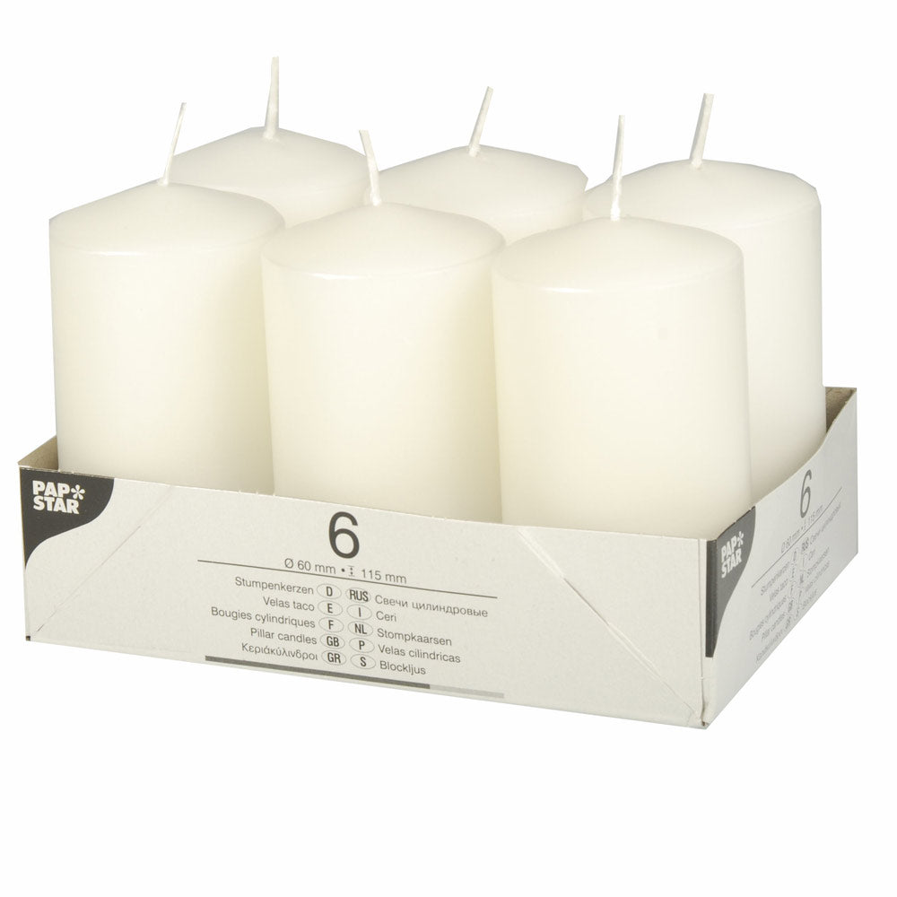 Stumpenkerzen Ø 6 x 11,5 cm - Weiß (4 x 6 Stück)