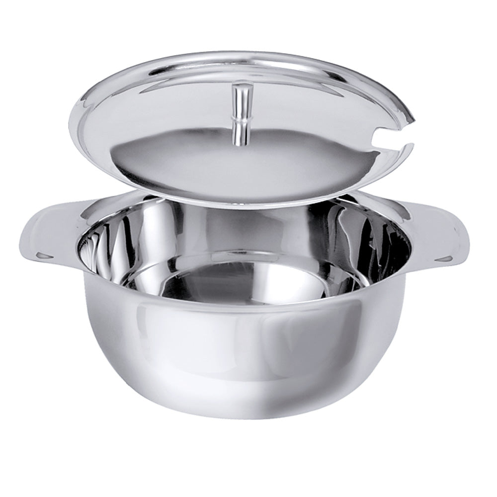 Hochwertige Suppenterrinen in schwerer Qualität. Aus rostfreiem, hochglänzendem Chromnickelstahl 18/10. Spülmaschinenfest und stapelbar. Lieferung ohne Deckel. Deckel mit Löffelaussparung bitte separatbestellen.