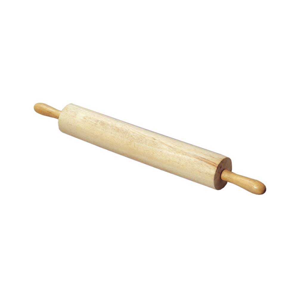 Teigrolle aus unbehandeltem, naturbelassenem Gummibaumholz (Hartholz). Nicht spülmaschinengeeignet. Die Teigrolle hat einen Durchmesser von 8,3 cm und eine Länge von 45 cm. Die Grifflänge beträgt 9,5 cm (Ø 2,5 cm), sodass die Gesamtlänge der Teigrolle bei 64 cm liegt.