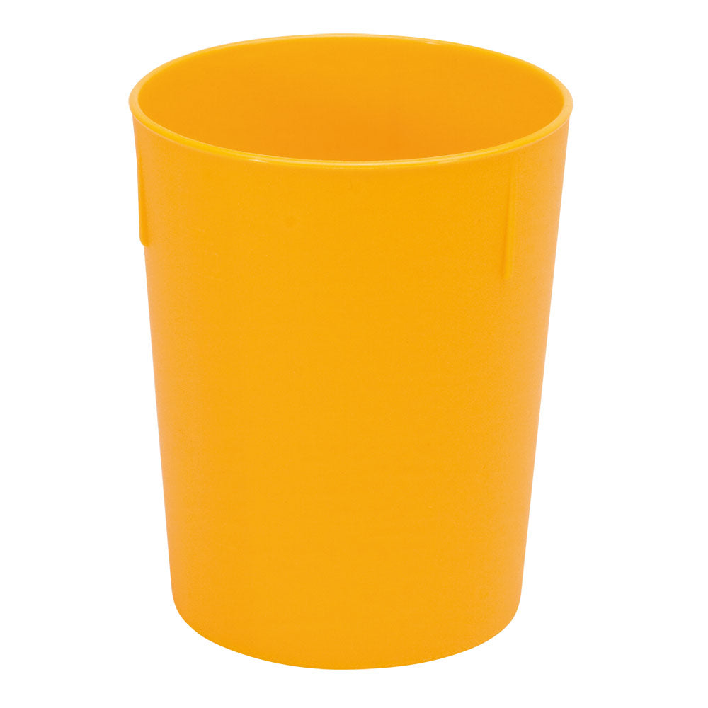 Farbenfroher Trinkbecher aus deutscher Herstellung. Stapelbare, spülmaschinenfeste Ausführung aus unzerbrechlichem, BPA-freiem PP-Kunststoff. Inhalt 25 cl - Ø 7,4 x 9 cm.