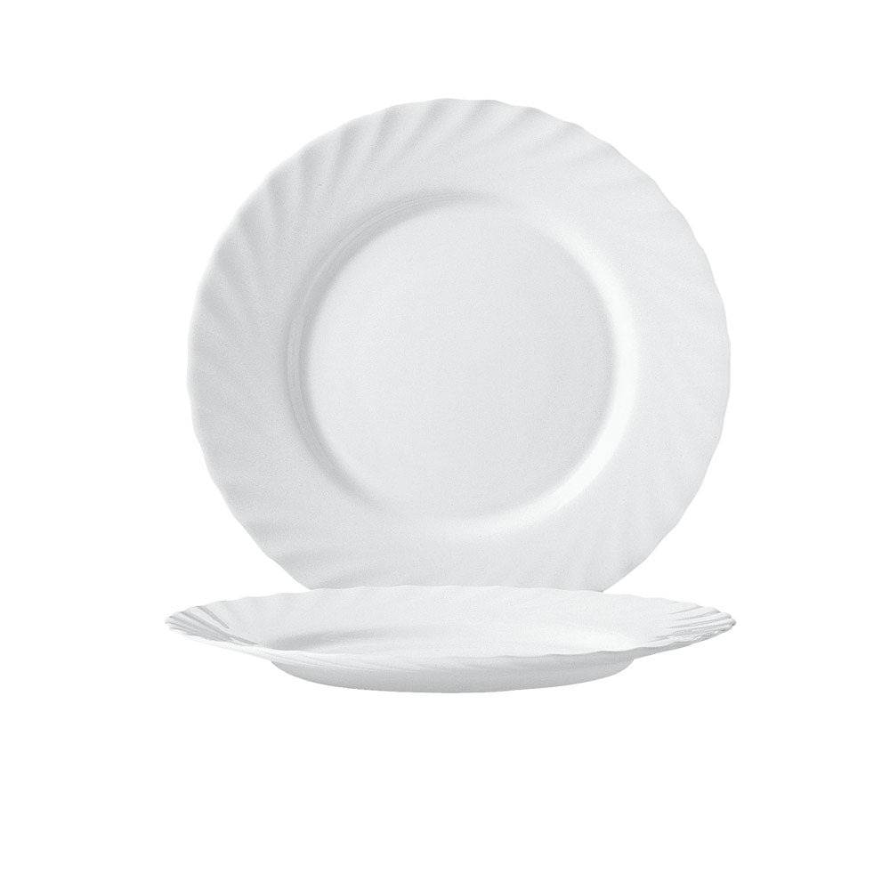 Als Suppen-Untere kann der Allzweckteller verwendet werden. Preiswerte, reinweiße Geschirrserie. Das filigrane Äußere dieses Geschirrs verbirgt anmutig die tatsächliche Robustheit des gehärteten Opalglases. Die feine Wellenstruktur von Tellerfahnen und Wandungen verbirgt gekonnt das verblüffend geringe Eigengewicht. Mikrowellengeeignet und spülmaschinenfest. 5 Jahre Nachkaufgarantie.