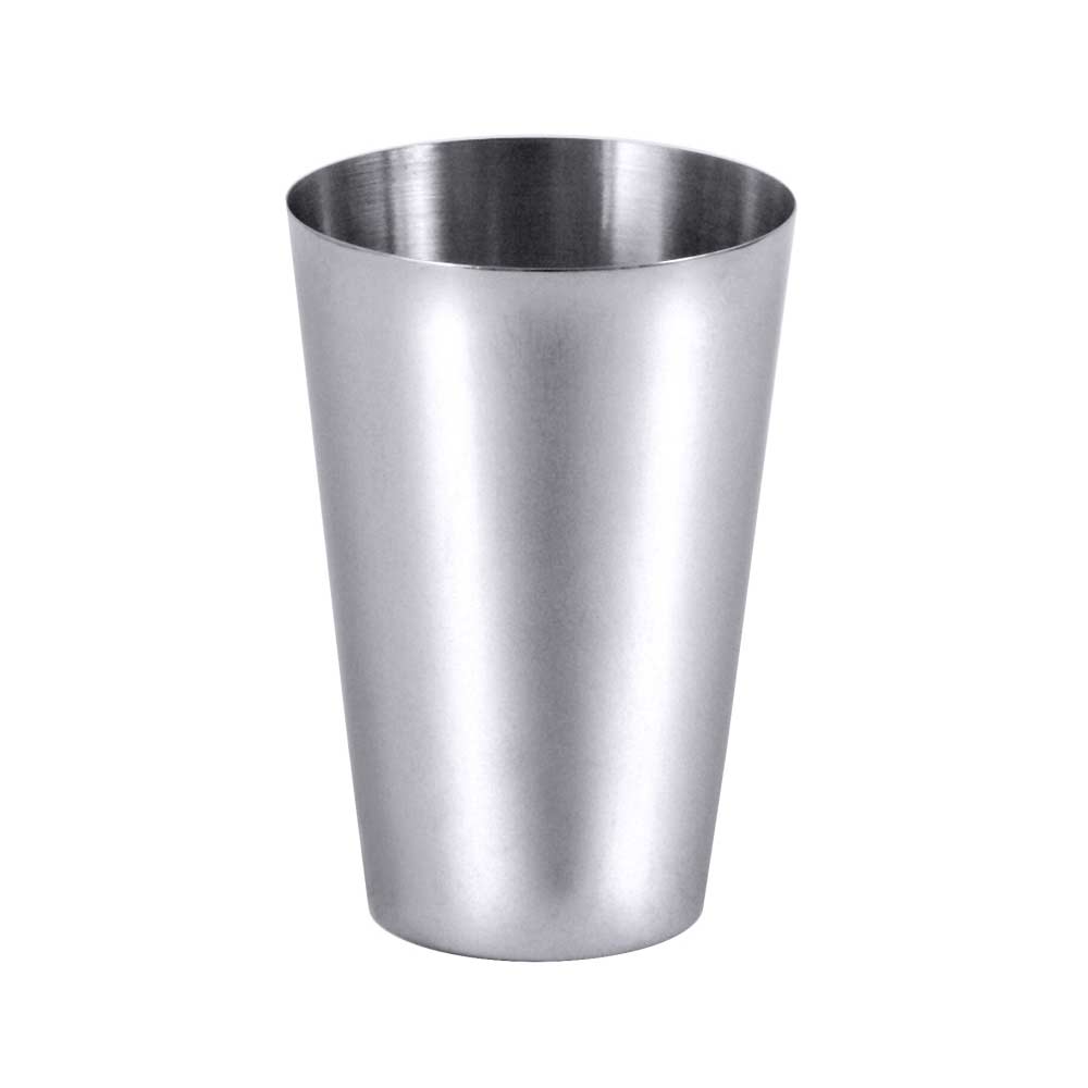 Trinkbecher aus Edelstahl 18/10, außen hochglänzend, mittelschwere Qualität. 25 cl Inhalt mit Ø 7,5 x 10 cm.