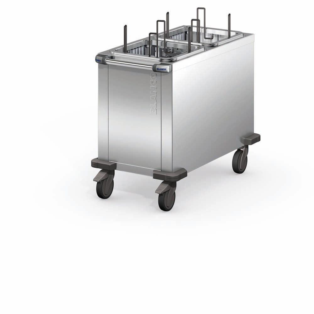 Unbeheizter Tellerspender aus rostfreiem Edelstahl für das Transportieren von Geschirr mit herausnehmbaren, quadratischen Röhren. Mit niedriger Höhe, deswegen speziell für die Verpflegung von Kindern geeignet Mit Easy-Setting-System für eine einfache Federeinstellung. Mit 4 Stoßecken und Kunststoff-Rollen Ø 12,5 cm, vier Lenkrollen, davon zwei feststellbar.