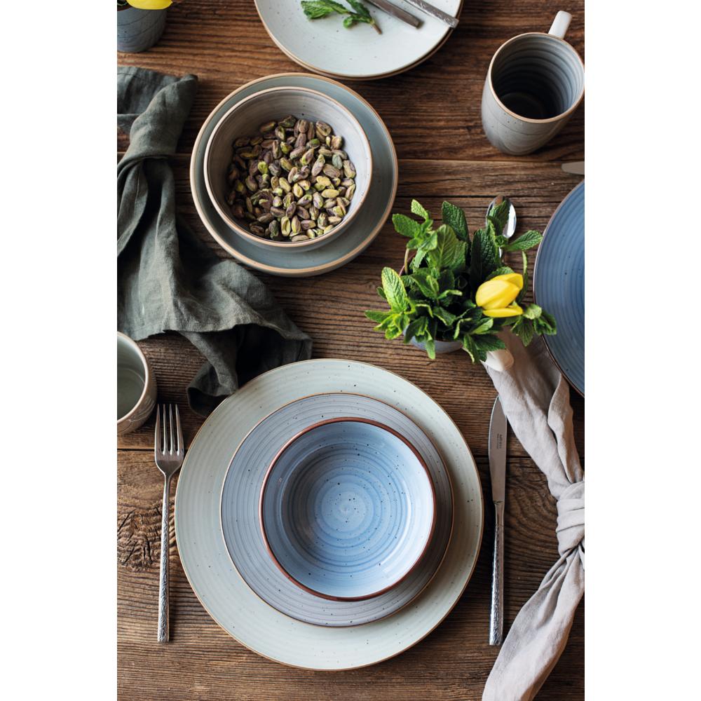 Der VALMERA Menüteller aus der Serie VALMERA von Mäser vereint moderne Formensprache mit einem charmanten, rustikalen Vintage-Stil. Gefertigt aus Steingut (Keramik), überzeugt er durch feine Linien und dezente Punkte, die ihm einen authentischen Handmade-Charakter verleihen.