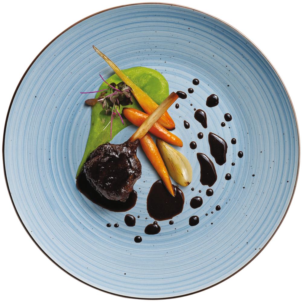Mit einem Durchmesser von 27 cm bietet der Teller großzügig Platz für Hauptgerichte, Menüs oder Buffetspeisen. Das dezente Hellblau mit einem farblich abgesetzten Rand sorgt für ein harmonisches und einladendes Gesamtbild.