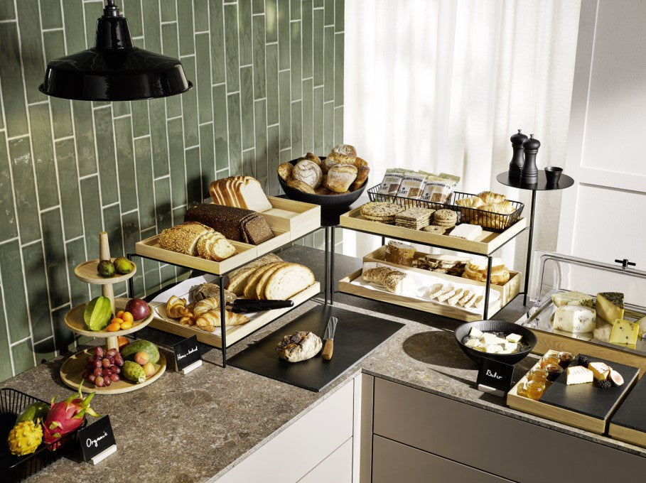 VALO steht für Nachhaltigkeit durch hochwertige Materialien wie Eiche, Schiefer und Metall. Das modulare Buffetsystem bietet vielseitige Lösungen von platzsparend bis repräsentativ. Auf Gastronormgröße basierende, stapelbare Boxen und Tabletts bilden das Herzstück eines innovativen und immer wieder individuell erweiterbaren Baukastensystems. Geeignet für die vielseitige Speisenpräsentation ist VALO somit das universelle Buffetsystem, das Lösungen für alle Anforderungen bietet - von kreativ bis hochfunktional. Mit umfangreichem Zubehör bietet es vielseitige Lösungen für die Speisenpräsentation.