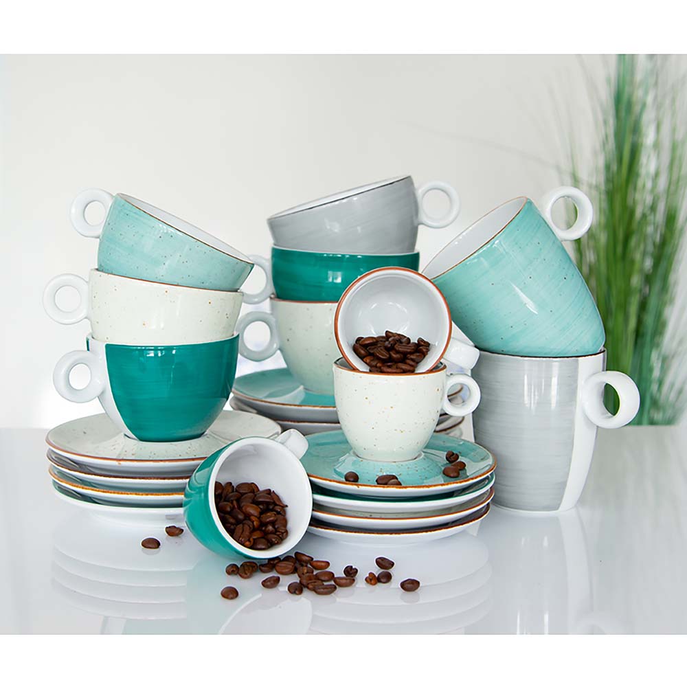 Sie vereint ein farbenfrohes Töpferei-Dekor mit individuellem Charakter auf einer Basis aus reinweißem Hotelporzellan mit einem Scherben von hervorragender Qualität, welche das Geschirr besonders widerstandsfähig macht.