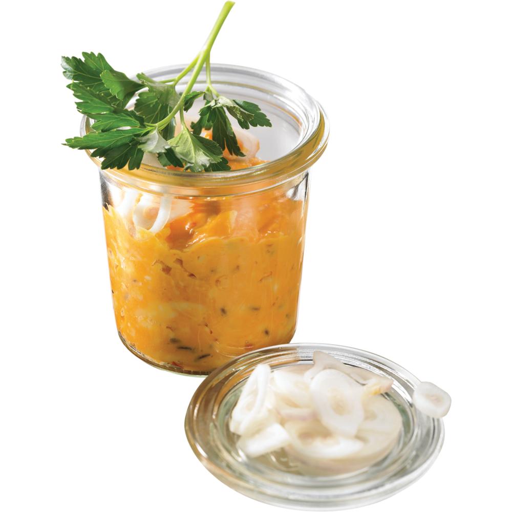 Das klassische WECK Glas #761 in Sturzform hat ein Fassungsvermögen von 140 ml. Bei den Maßen Ø 6,7 x 7 cm misst der Rundrand 60 mm. Diese kleinen Gläser bieten sich für Vorspeisen, Appetizer und ausgefallene Desserts an.