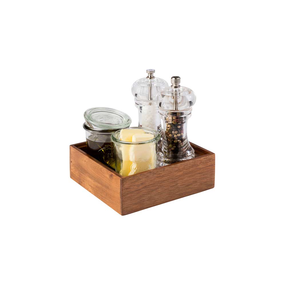 WOODY Holzbox/Holzbox/Tischbehälter 1-fach 15 x 15 x 5,5 cm, Akazienholz, Servierbox für Brot & M