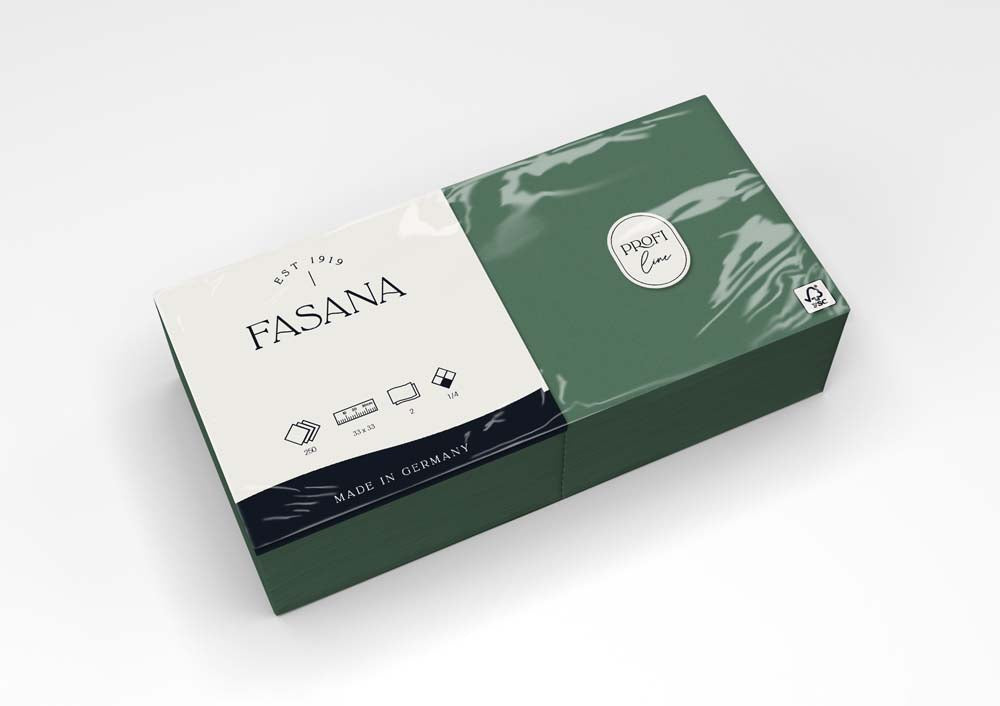 Zelltuchserviette - 33 x 33 cm - 1/4 Falz - 2 - lagig - Dunkelgrün (250 Stk)