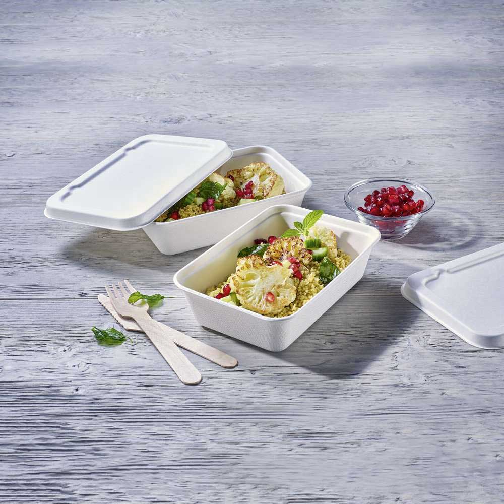Die prakischen und umweltfreundlichen Verpackungslösungen von GREENHORN bieten mit ihren vielfältigen Produkten die perfekte Lösung für Ihr Außer-Haus-Geschäft. Alle Artikel bestehen aus dem nachhaltigen Rohstoff Zuckerohr und sind somit einfach zu recyceln und biologisch abbaubar. Die servierten Speisen werden sicher transportiert, da die Innenseiten undurchlässig für Öl und Wasser sind. Zu Hause kann der Gast seine Speisen nochmal direkt in der Mikrowelle erhitzen, ohne die Lebensmittel aus der Umverpackung zu nehmen. Die Schale hält Temperaturen von -25° bis +220° C problemlos stand.